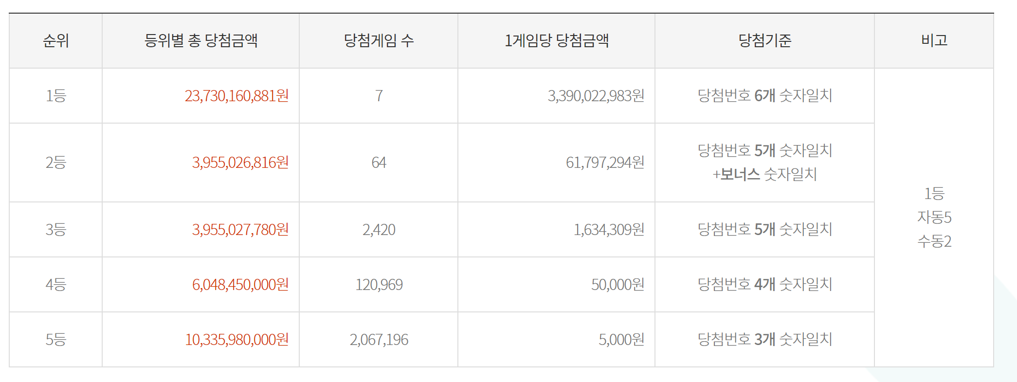 먼저 당첨금액부터 자세히 살펴보도록 하겠습니다.