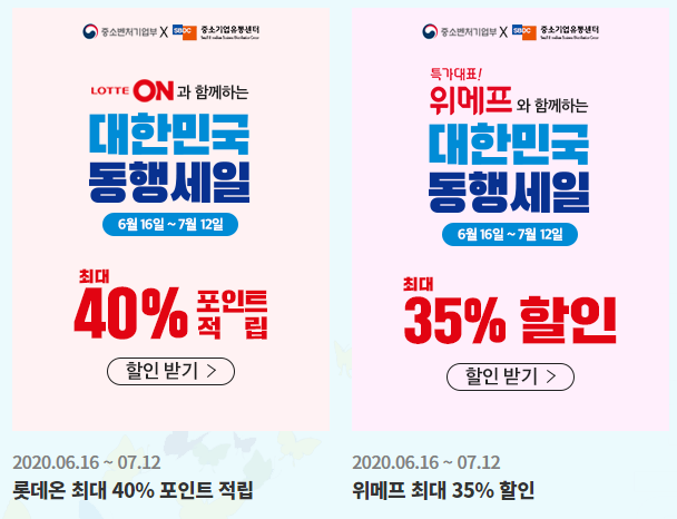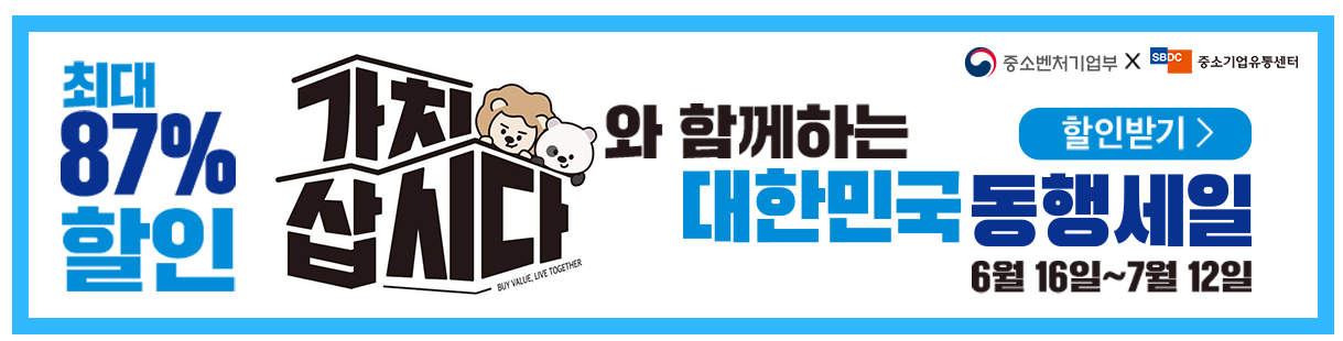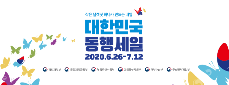 안녕하세요. 오늘은 중소벤처기업부에서 추진하는 대한민국 동행세일에 대한 정보를 요약해서 전해 드리도록 하겠습니다. 코로나로 인해 국내외 경제지표가 바닥으로 추락하고 있는데 , 이를 극복하기 위해서 중소벤처기업부 주간으로 국내 내수를 활성화시키기 위해 대한민국 동행세일을 준비하고 있습니다.