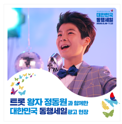 특히 , 이번 세일은 전국적으로 요즘 열풍인 미스터 트롯 출신의 정동원을 내세워 열심히 홍보 중에 있습니다. 이외에도 한류스타인 'NCT드림'도 홍보대사로 열심히 현장 이벤트 등을 통해 지원 예정이라고 합니다.