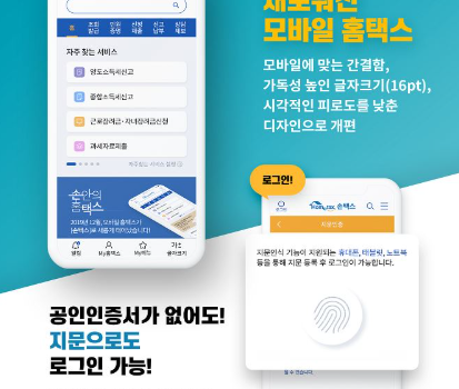 * 국세청 모바일 홈택스 [손택스] 국세청 모바일 홈택스 [손택스] 앱에서는 회원가입, 세금신고·납부, 국세민원, 장려금 신청, 연말정산간소화 서비스, 현금영수증 사용내역조회, 전자세금계��