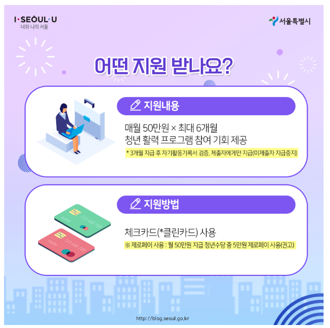 체크카드(클린카드) 로 지급되며, 서울시에서 하는 만큼 월 5만원 제로페이 사용을 권고합니다.