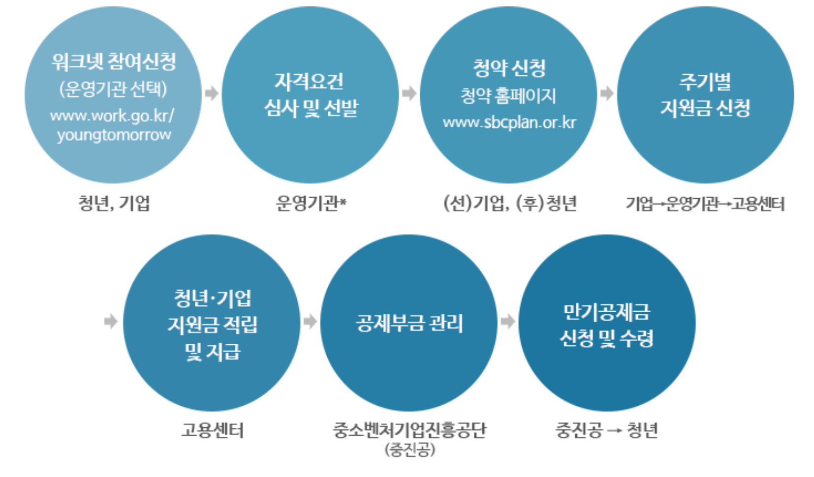 신청방법은 워크넷-청년공제 홈페이지 : ▶ https://www.work.go.kr/youngtomorrow/index.do#