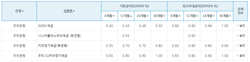 시니어플러스우리예금(회전형) - 12개월최대 0.95%