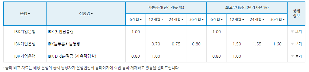IBK 첫마남통장 - 12개월 최고우대금리 적용시 0.98%