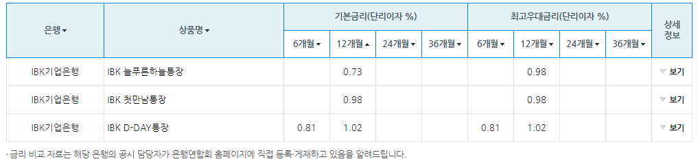IBK 첫마남통장 - 12개월 최고우대금리 적용시 0.98%