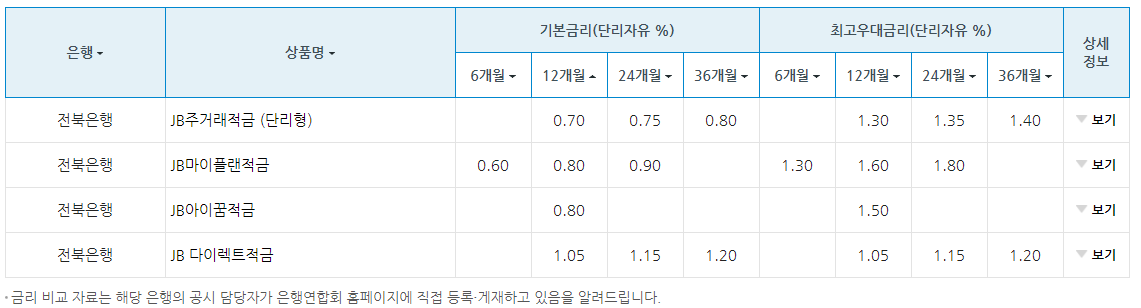 이렇게 오늘은 JB전북은행의 예금상품 금리와 적금상품금리에 대해서 알아보았습니다.
