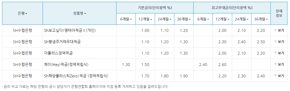 이렇게 오늘은 SH수협은행의 예금과 적금에 대한 금리를 알아보았습니다.