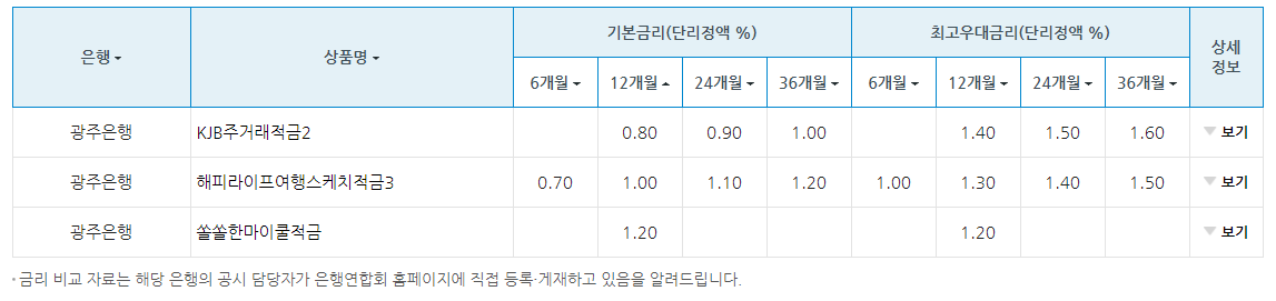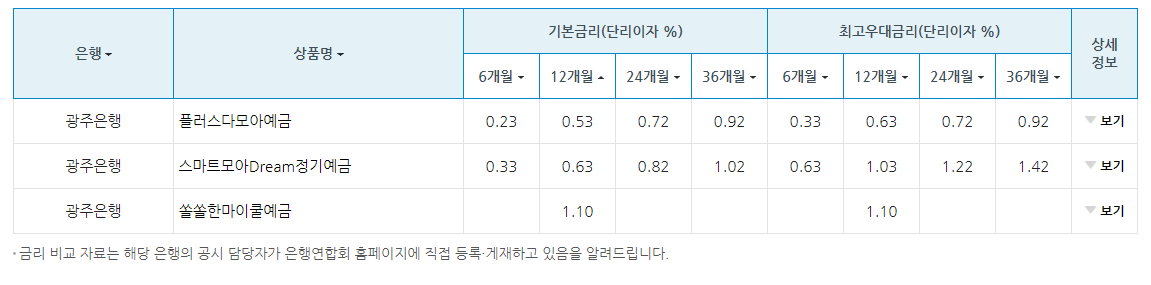 이시간에는 지난번 부산은행과 같은 지방은행으로 광주은행에 대해서 알아보도록 하겠습니다. 아무래도 지방권은행들이 금리측면에서는 수도권에 비해 아주 약간 금리가 높은 것 같습니다.