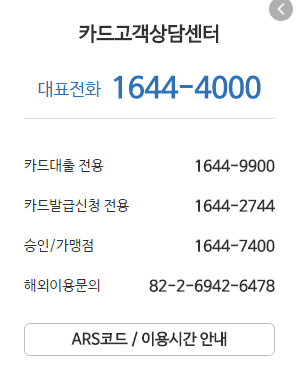 1644-4000, ( 해외이용시 82-2-6942-6478 )