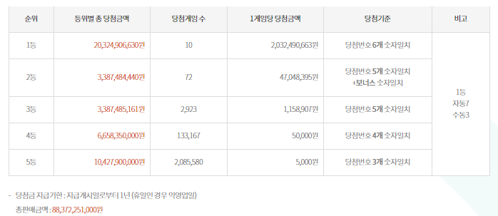 1등이 10명, 약 20억, 2등이 72명이고 약 4700만원정도 되는데 , 2등도 대단한데 상당히 많이 나왔습니다. 3등도 가계에 포함이 되는데요 약 115만원정도 됩니다. 아주 많이 아쉬울것 같습니다. 번호 한개 차이니까요.